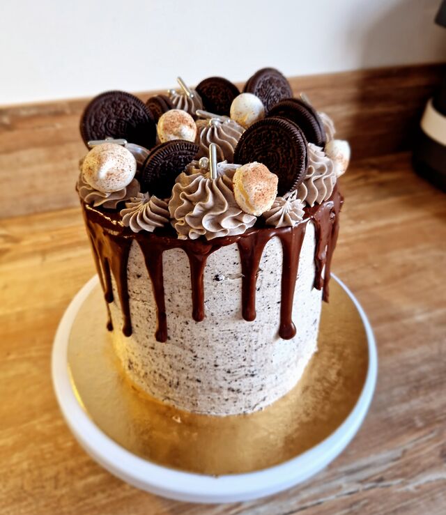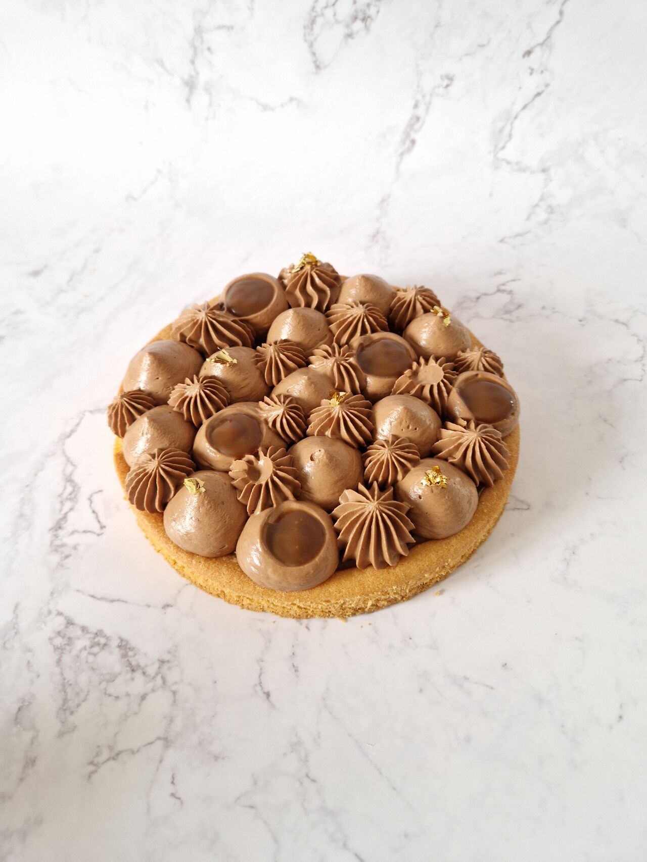 Cake Design drip chocolat - Mousse chantilly Nutella avec un croustillant praliné ainsi qu'une ganache namelaka.